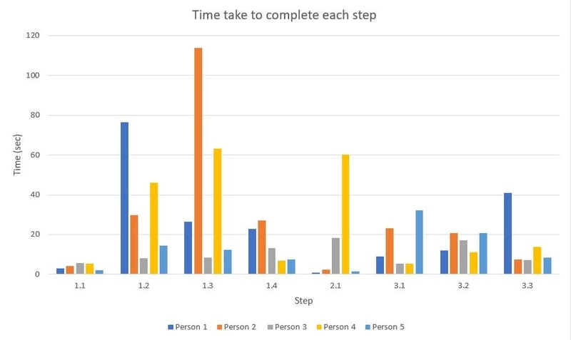 From usability testing, both qualitative and quantitative data were collected to help identify strengths and weaknesses regarding the usability of the prototype. I was responsible for collecting quantitative data, recording the time participants took to complete tasks and tracking the amount of mistakes made, which I used to compute average time and mistakes per step.